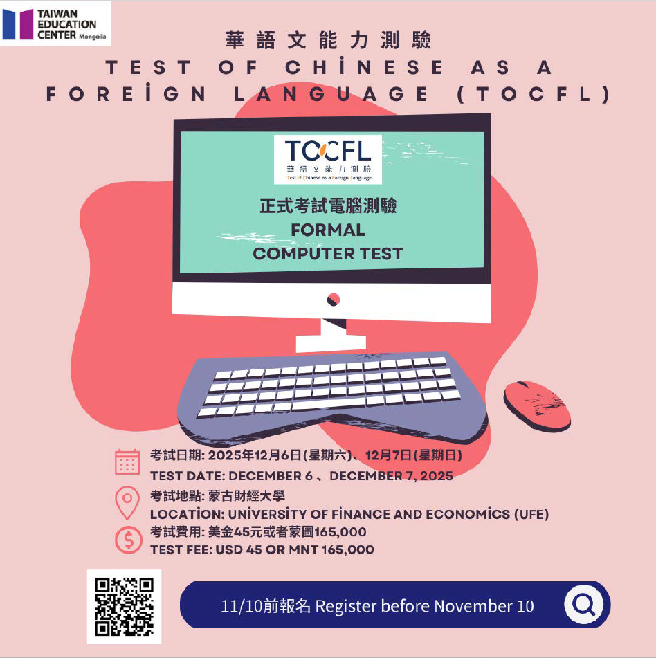 【活動】蒙古臺灣教育中心辦理「華語文能力測驗」114年12月正式考試事宜