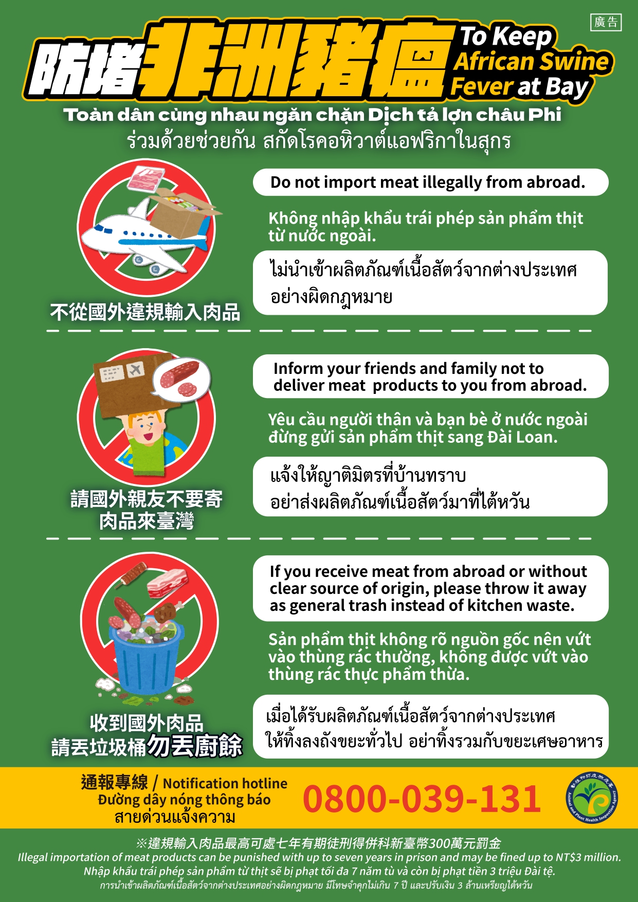 境外學生務必遵守我國動植物防疫檢疫相關規定,